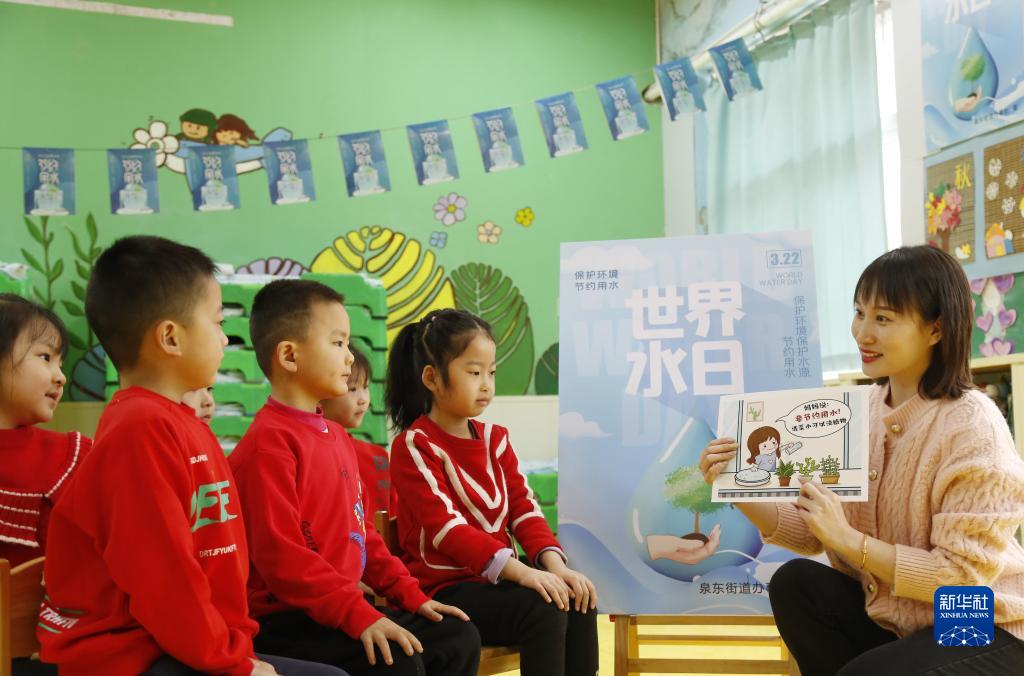 3月21日,河北省邢臺市襄都區豫辦實(shí)驗幼兒園教師在給小朋友們講解節水護水知識。