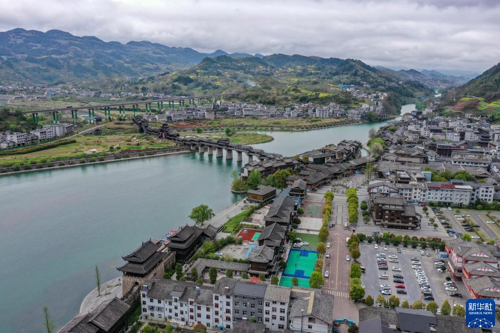 這是3月22日拍攝的重慶市黔江區濯水古鎮景區風(fēng)光(無(wú)人機照片)。