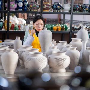“90后”女孩喬琳是山西省級非物質(zhì)文化遺產(chǎn)喬氏“法花”陶瓷傳統手工技藝的第二十九代傳承人。2015年,留學(xué)歸來(lái)的她回到家鄉山西省晉城市陽(yáng)城縣,從父輩手中接過(guò)了琺華傳統制作技藝。面對產(chǎn)品滯銷(xiāo)的困境,喬琳對琺華的釉色進(jìn)行創(chuàng )新,對上面的圖案和內容進(jìn)行調整,賦予琺華更多時(shí)代氣息。改良創(chuàng )新后的琺華因為設計感強、釉色特別、貼近潮流,受到消費者青睞。