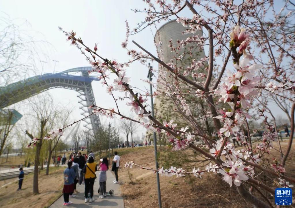4月4日,游客在北京首鋼滑雪大跳臺區域參觀(guān)游覽。