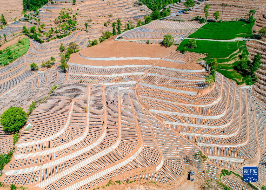 漢中市略陽(yáng)縣郭鎮譚家莊村綜合治理后的梯田(4月26日攝)。