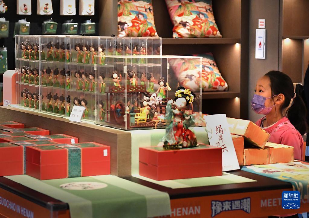 5月17日,一名小朋友在河南博物院文創(chuàng )商店內挑選文創(chuàng )產(chǎn)品。