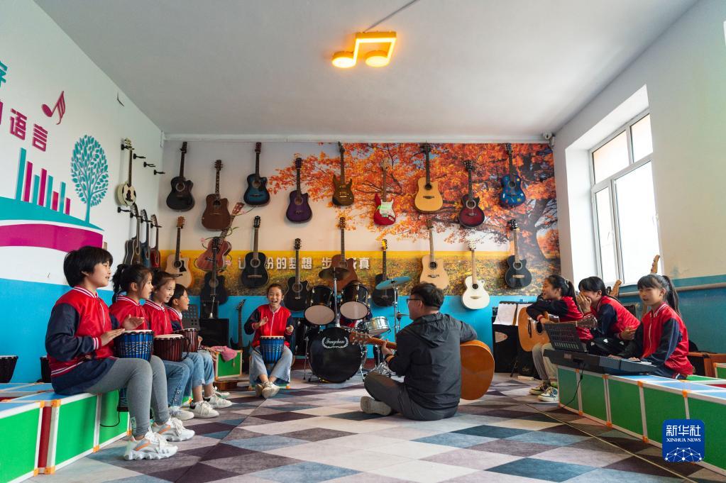 5月24日,在黑龍江省安達市任民鎮中心小學(xué),張雨和“村里的孩兒”音樂(lè )班的孩子進(jìn)行樂(lè )隊排練。