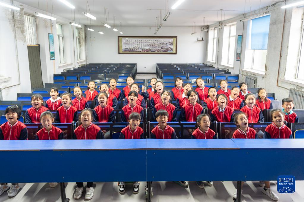 5月24日,在黑龍江省安達市任民鎮中心小學(xué),“村里的孩兒”音樂(lè )班的孩子練習合唱。