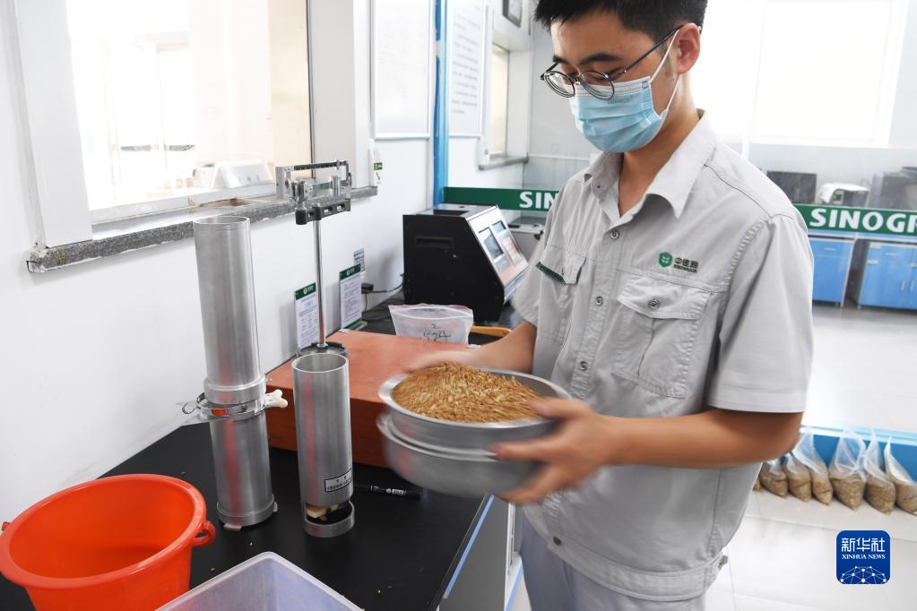 5月24日,在中央儲備糧鄧州直屬庫有限公司質(zhì)檢室內,質(zhì)檢員進(jìn)行小麥分樣檢測。
