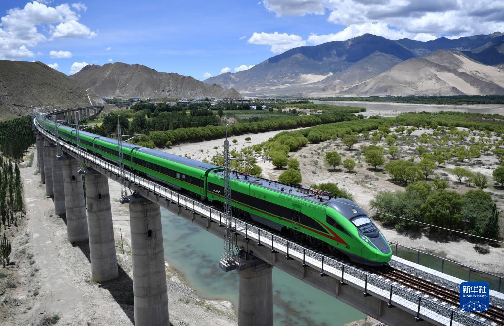 6月22日,復興號列車(chē)行駛在西藏山南境內。
