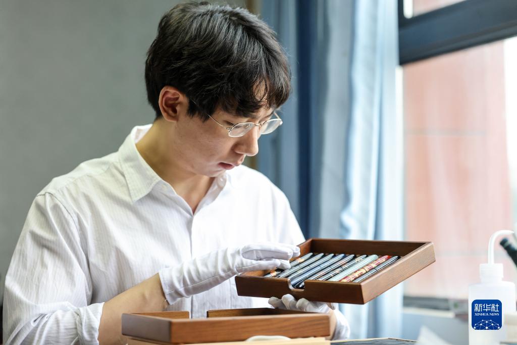 7月1日,袁建在位于貴州大學(xué)國家大學(xué)科技園的工作室整理鋼筆成品。