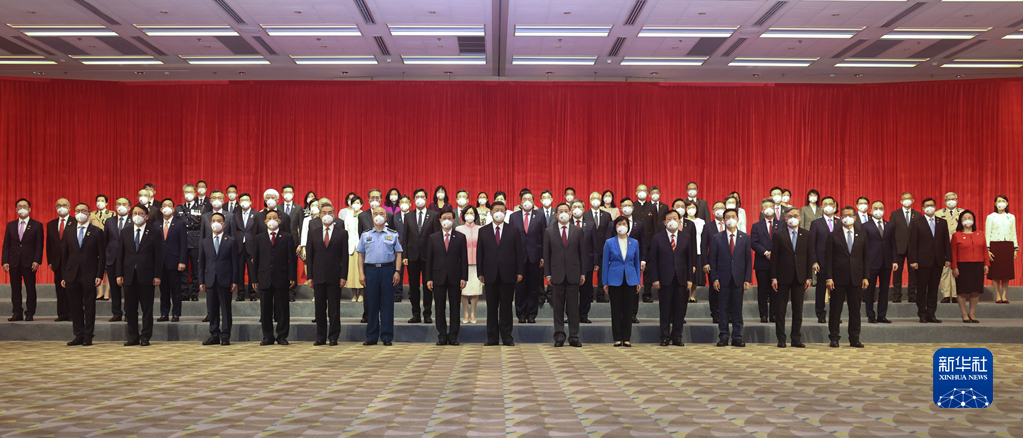 7月1日上午,國家主席習近平在香港特別行政區行政長(cháng)官李家超的陪同下,會(huì )見(jiàn)香港特別行政區新任行政、立法、司法機關(guān)負責人。新華社記者 鞠鵬 攝