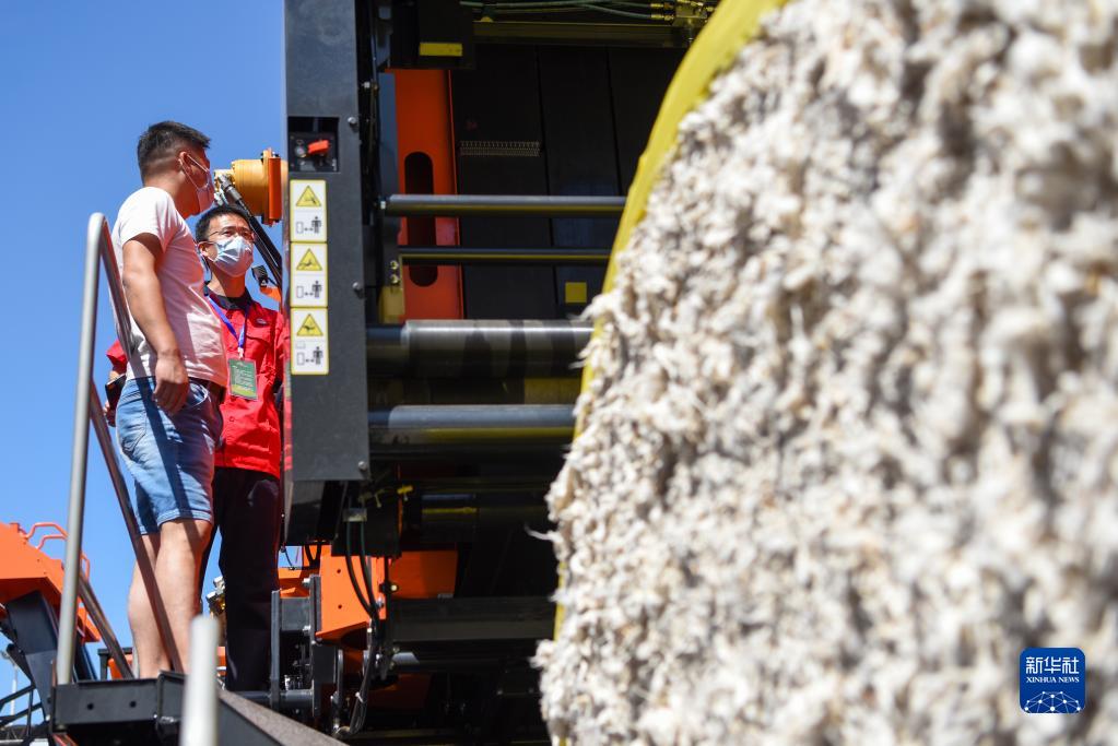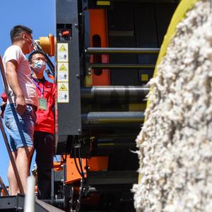7月3日,在2022新疆農業(yè)機械博覽會(huì )上,與會(huì )者在參觀(guān)棉花收獲機。