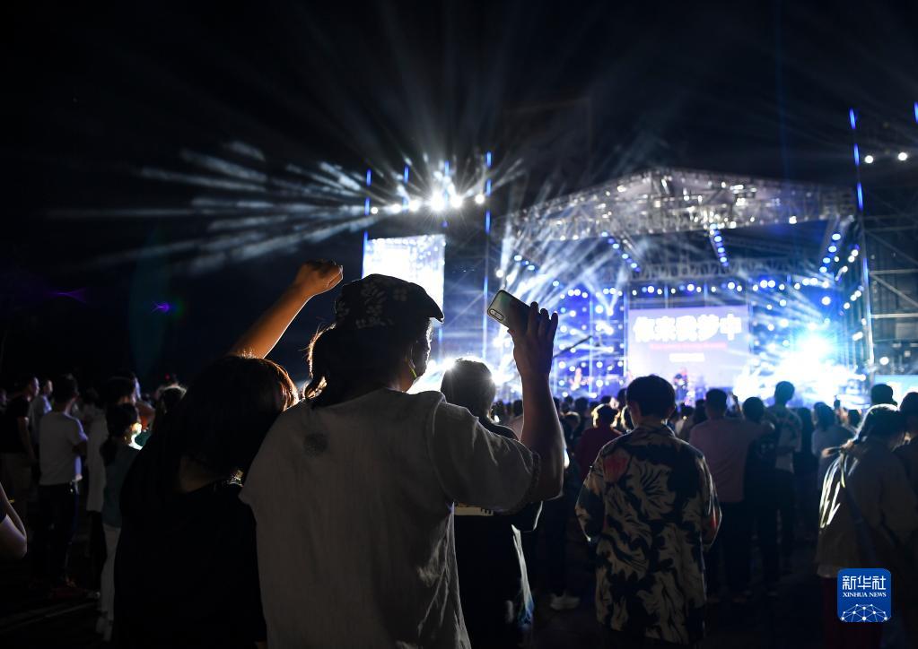 游客在大武口洗煤廠(chǎng)工業(yè)遺址公園觀(guān)看“工業(yè)之聲”音樂(lè )節演出(7月9日攝)。
