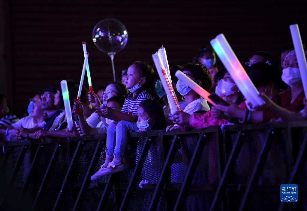 游客在大武口洗煤廠(chǎng)工業(yè)遺址公園觀(guān)看“工業(yè)之聲”音樂(lè )節演出(7月9日攝)。