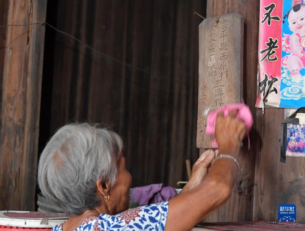 在江西省樂(lè )平市,今年85歲的程大妹在家中擦拭抗美援朝犧牲烈士王傳勝的牌位。王傳勝1950年參軍,作為未婚妻的程大妹一直等著(zhù)他回家完婚,但是卻等來(lái)了王傳勝犧牲的消息。多年來(lái),程大妹一直保留著(zhù)王傳勝犧牲時(shí)留下的遺物。2021年,程雪清幫助她找到了位于朝鮮開(kāi)城的中國人民志愿軍烈士陵園的合葬墓位置(7月6日攝)。