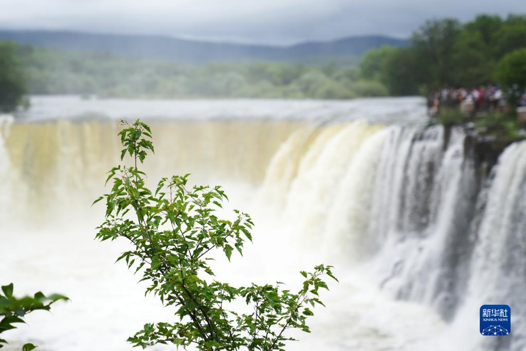 受上游來(lái)水量增多等因素影響,近日,位于黑龍江省牡丹江市的鏡泊湖世界地質(zhì)公園水量持續增加,景區內的吊水樓瀑布出現“三面溢流”壯觀(guān)景象。