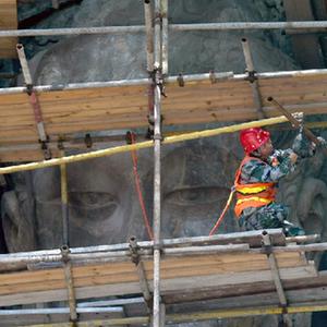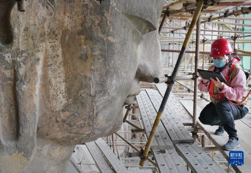 7月21日,固定在奉先寺崖壁上的腳手架及防護網(wǎng)開(kāi)始有序拆除,洛陽(yáng)龍門(mén)石窟奉先寺大型滲漏水治理和危巖體加固保護工程完工。滲漏水及危巖體一直是威脅龍門(mén)石窟文物安全的主要病害。2021年12月,龍門(mén)石窟奉先寺啟動(dòng)大型保護工程,重點(diǎn)對這兩類(lèi)病害進(jìn)行修復治理,保障文物和游客安全。