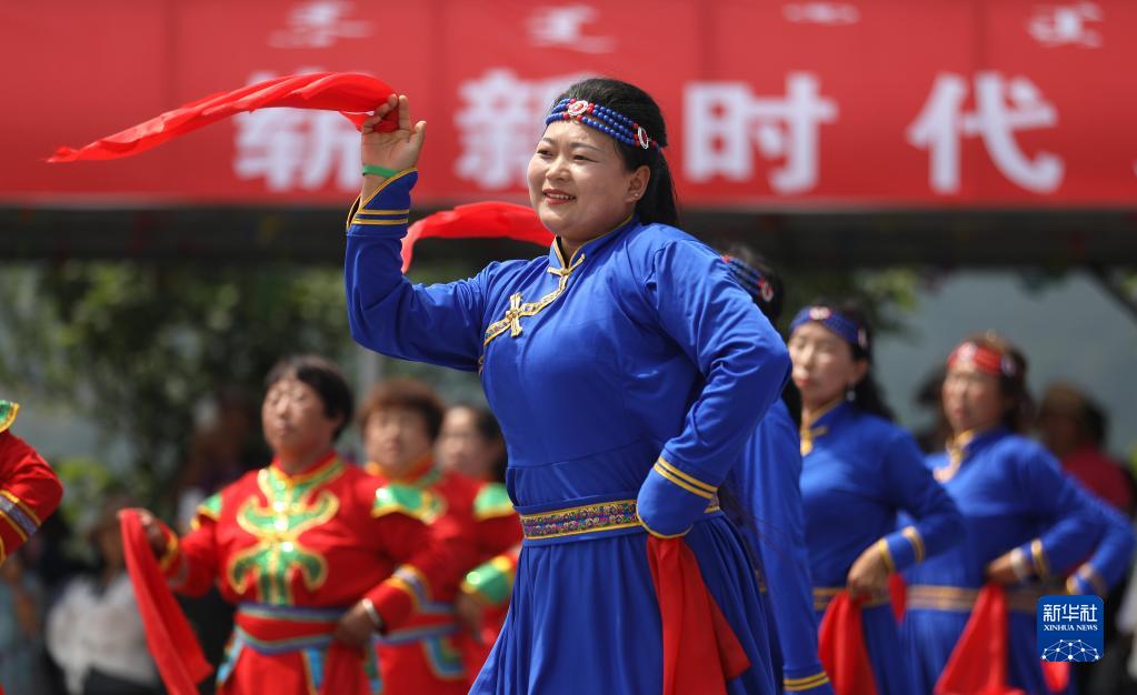 7月26日,查干哈達村村民在睦鄰節上表演舞蹈。