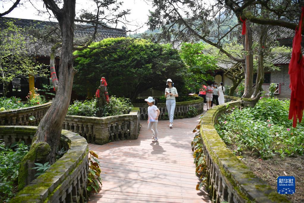 7月31日,游客在留壩縣張良廟景區內游覽。