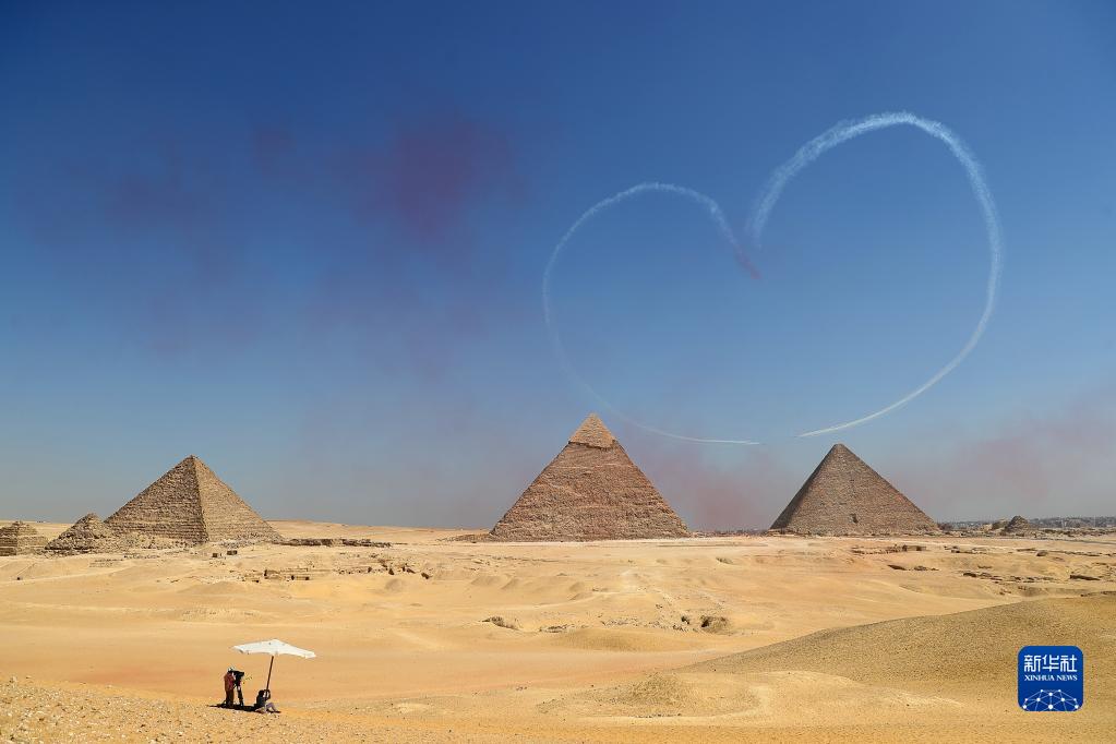 當日,埃及2022金字塔航空表演在吉薩金字塔景區舉行,來(lái)自埃及和韓國的多個(gè)飛行表演隊伍進(jìn)行了多項精彩的飛行表演。