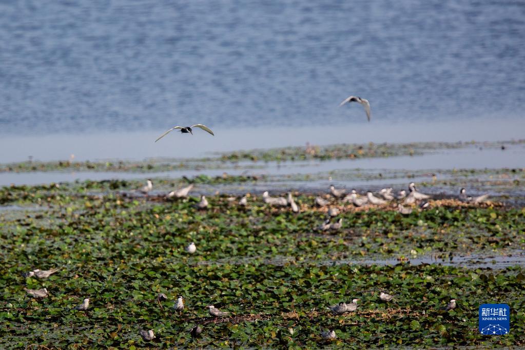 近期,眾多候鳥(niǎo)在湖北省武漢市沉湖生態(tài)自然保護區筑巢繁衍。候鳥(niǎo)或迎風(fēng)翱翔,或覓食嬉戲,為這里增添了勃勃生機。
