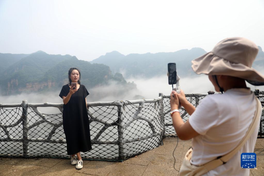 當日,位于河北省承德市興隆縣的興隆山出現云海景觀(guān),美若仙境,吸引游客參觀(guān)游覽,體驗山間清涼,觀(guān)賞壯美云海。興隆山景區位于興隆縣東部,是河北興隆國家地質(zhì)公園景區之一。