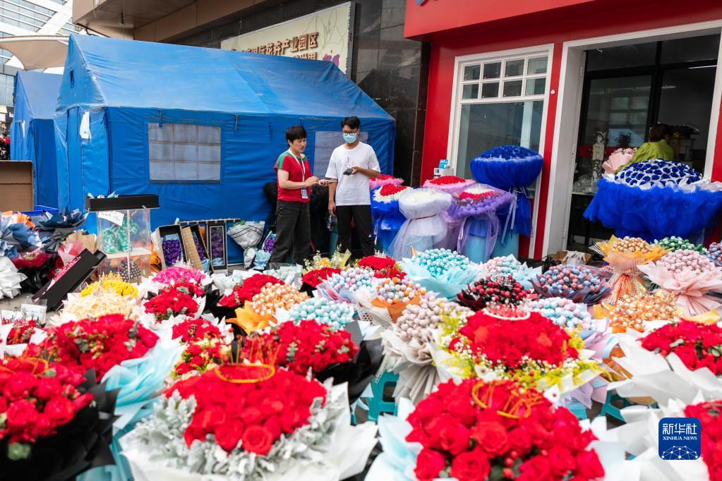 七夕節,鮮花俏銷(xiāo),花卉市場(chǎng)鮮花銷(xiāo)售升溫。