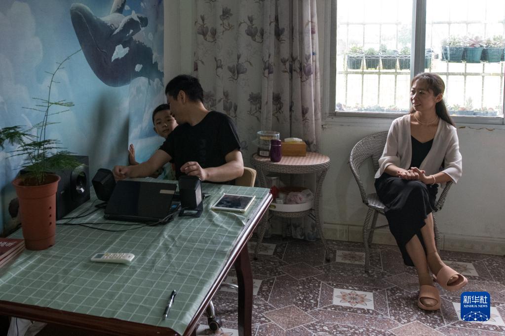 在四川省什邡市馬井鎮同心村,王忠禮一家在書(shū)房聊天(8月2日攝)。