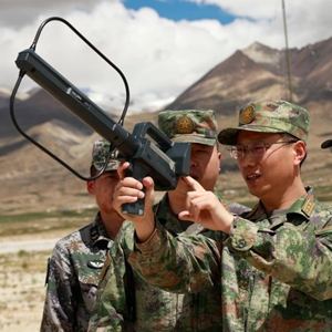 西部戰區聯(lián)合參謀部某局處長(cháng)王道彬(左)組織車(chē)載監測設備訓練(2022年7月14日攝)。