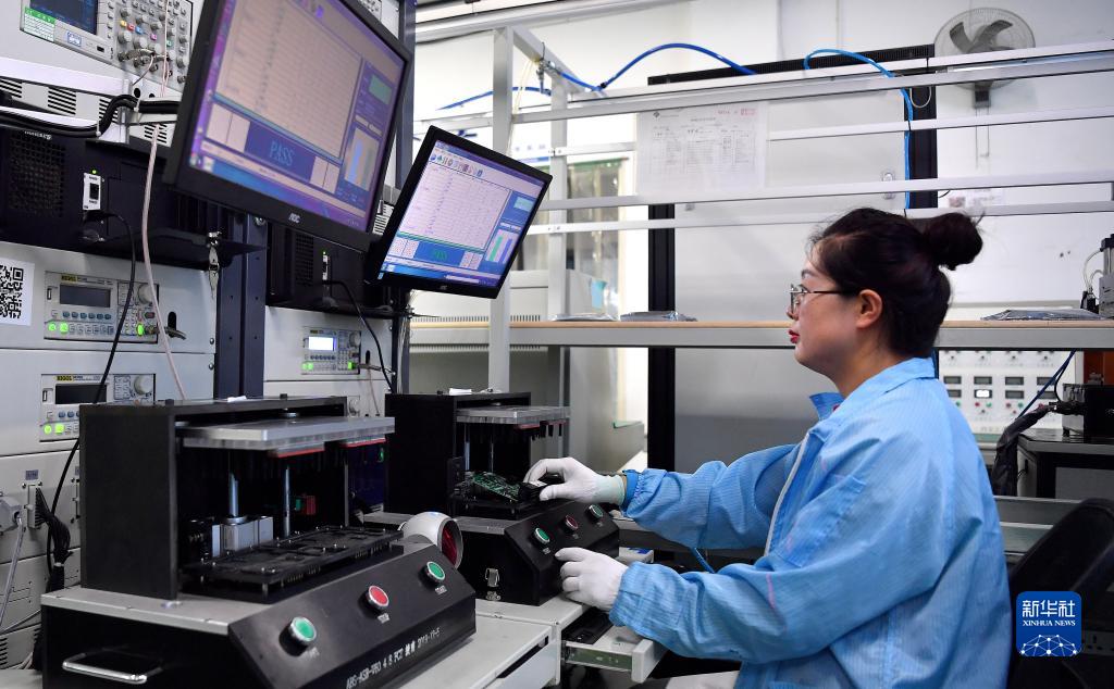 西安正昌電子股份有限公司的工作人員進(jìn)行剎車(chē)防抱死系統控制器測試(8月4日攝)。