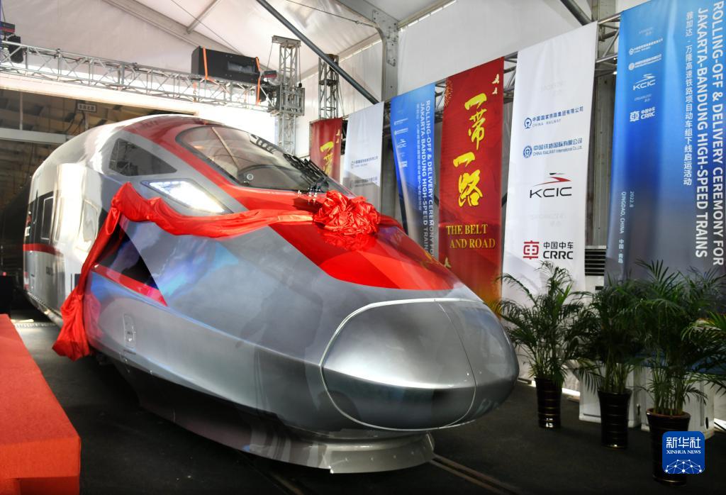 新華全媒+|我國出口印尼雅萬(wàn)高速動(dòng)車(chē)組在青島下線(xiàn)