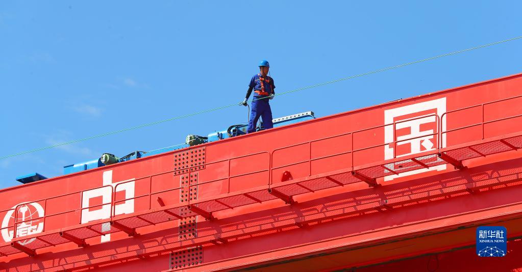8月6日,中鐵九局工程技術(shù)人員在箱梁架設現場(chǎng)施工作業(yè)。