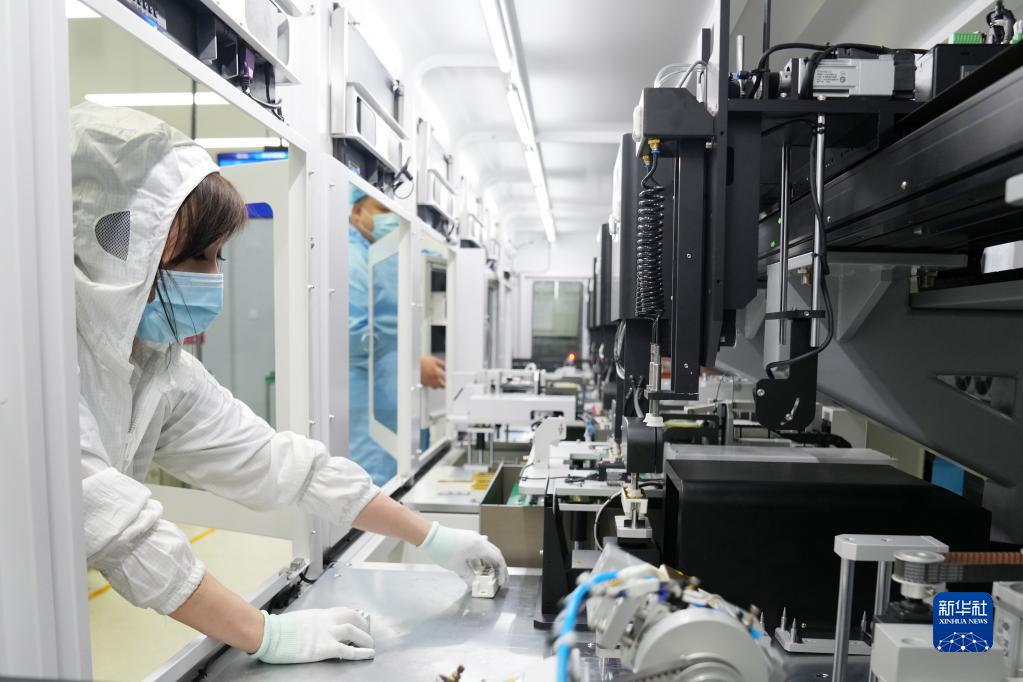 8月4日,工人在穆棱經(jīng)濟開(kāi)發(fā)區穆棱市北一半導體科技有限公司車(chē)間作業(yè)。