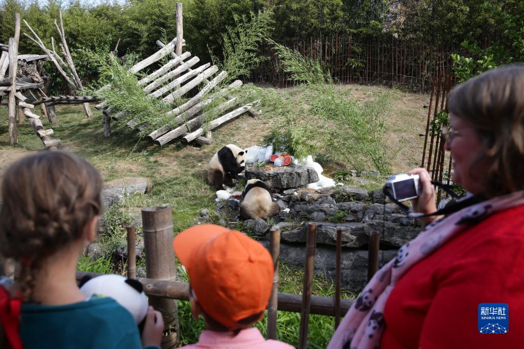 當天,比利時(shí)埃諾省布呂熱萊特的天堂動(dòng)物園舉行活動(dòng),為在這里出生的大熊貓“寶弟”和“寶妹”慶祝三歲生日。2019年8月8日,中國旅比大熊貓“好好”產(chǎn)下龍鳳胎“寶弟”和“寶妹”。