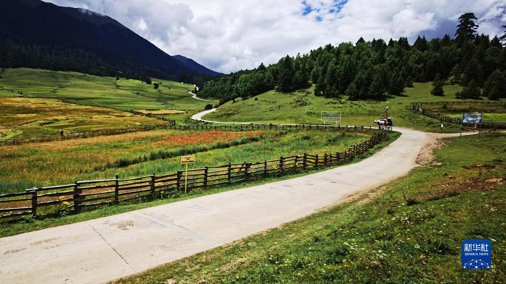 夏日的魯朗鎮,溪水潺潺,鮮花盛開(kāi),藏式村寨點(diǎn)綴其間,勾畫(huà)出一幅恬靜、優(yōu)美的“高原山居圖”。