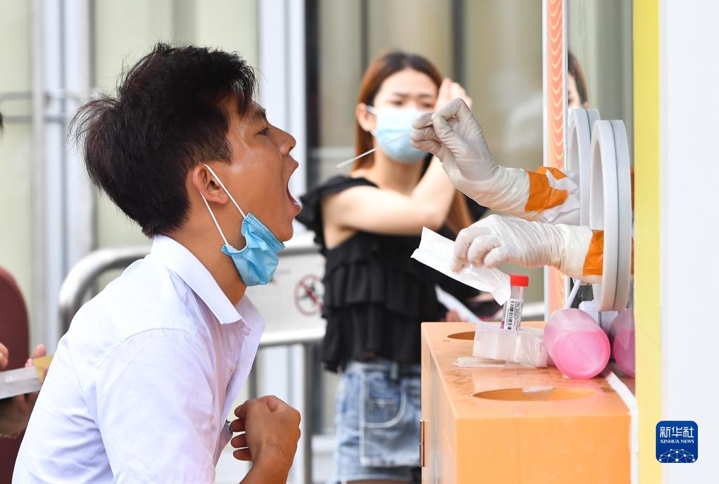8月7日,居民在??谑旋埲A區萬(wàn)象城采樣點(diǎn)進(jìn)行核酸檢測。