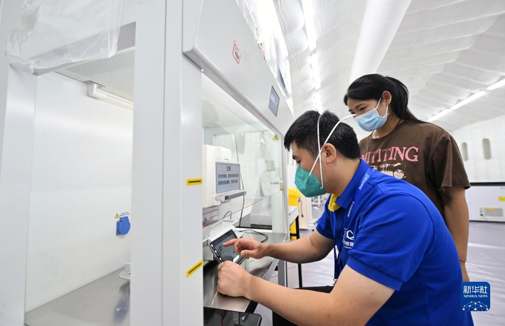 8月7日,由廣東省援海南三亞核酸檢測隊負責搭建的氣膜核酸檢測實(shí)驗室通過(guò)驗收。這是工作人員在實(shí)驗室內調試設備。