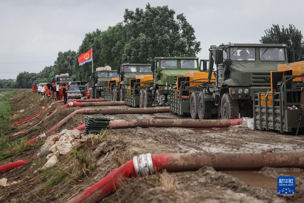 8月7日,搶險人員在遼寧盤(pán)錦繞陽(yáng)河左岸曾經(jīng)的河堤潰口北段進(jìn)行排澇作業(yè)。