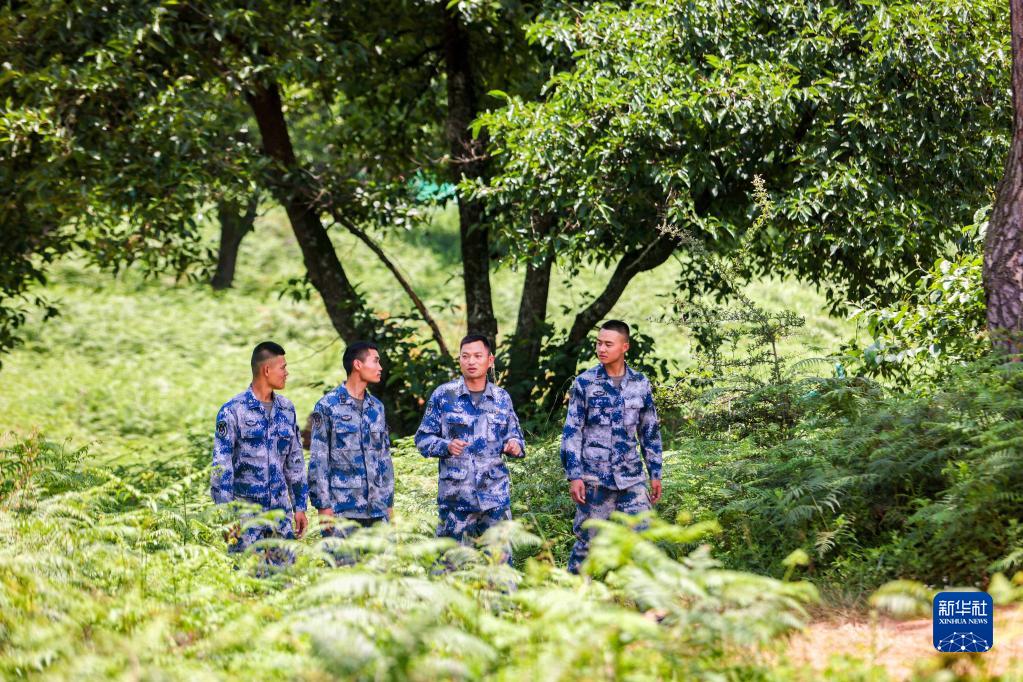 空降兵某旅二營(yíng)政治教導員余海龍(右二)和戰士談心(2022年7月11日攝)。新華社發(fā)(張朋倍 攝)