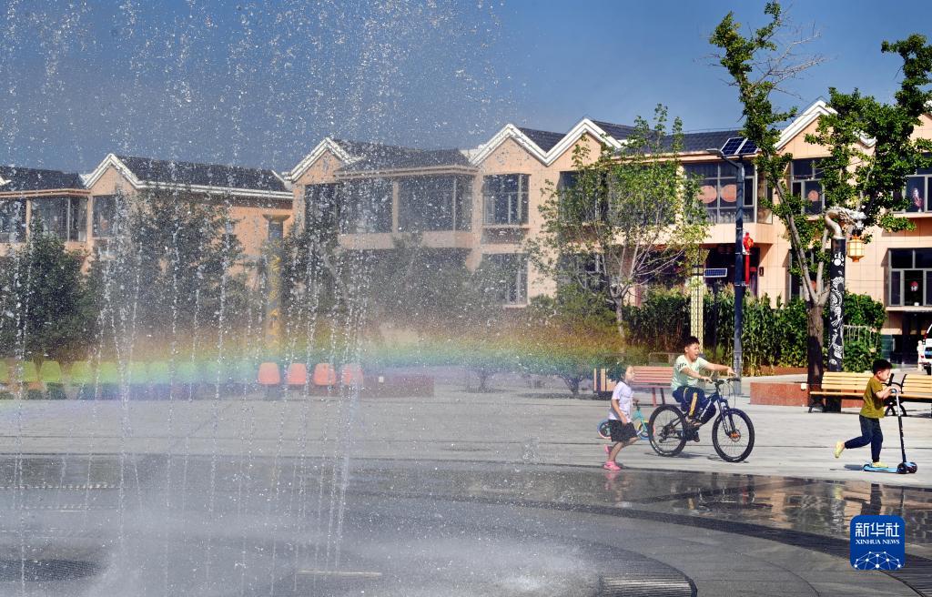 小朋友在神木市西溝街道四卜樹(shù)村廣場(chǎng)玩耍(8月5日攝)。多年來(lái),該村累計造林種草2.6萬(wàn)畝,全村林草覆蓋率達70%以上。村民由五溝八岔的偏僻之地統一搬進(jìn)設施齊全、功能完善、美麗宜居的現代新型農村社區,這里也成為“國家級美麗宜居村莊示范村”。