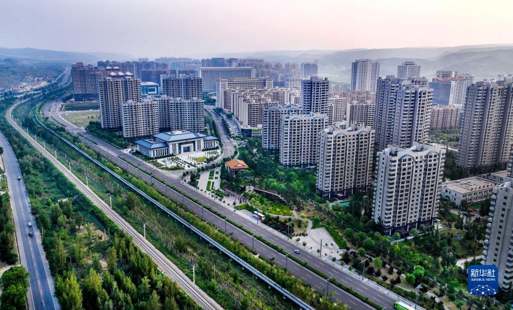 寬闊的綠蔭大道穿越神木市濱河新區(8月4日攝,無(wú)人機照片)。神木市著(zhù)力開(kāi)展生態(tài)空間綠化美化,提供優(yōu)質(zhì)生態(tài)產(chǎn)品,逐步形成功能完備的生態(tài)資源空間布局。