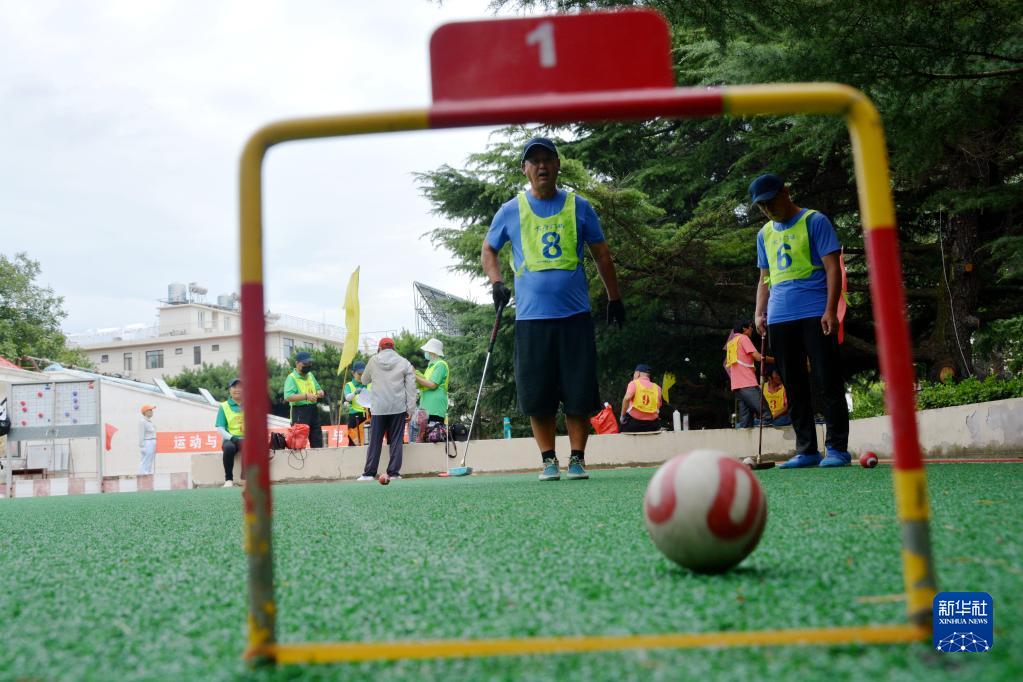8月8日,在河北省秦皇島市北戴河區,市民參加門(mén)球比賽。