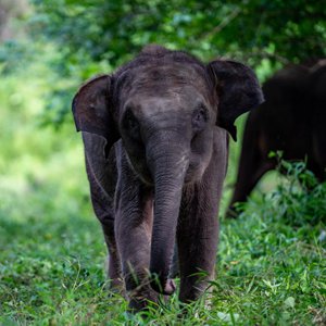 這是在云南西雙版納野象谷拍攝的亞洲象(7月28日攝)。新華社記者 江文耀 攝