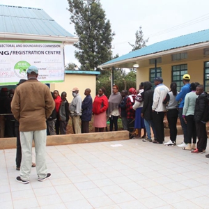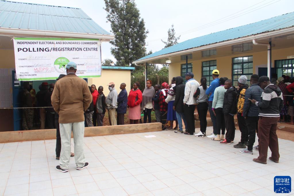 8月9日,人們在肯尼亞基安布郡一投票站排隊等待投票。