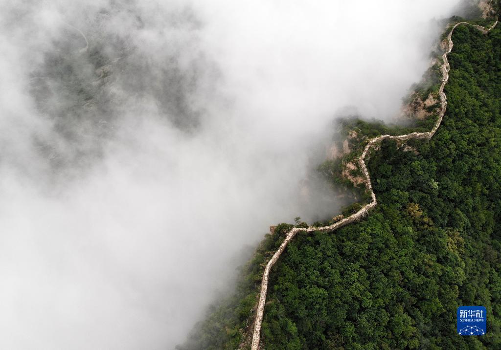 8月9日拍攝的金山嶺長(cháng)城云海景觀(guān)(無(wú)人機照片)。