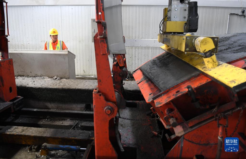 8月9日,工人在中鐵四局安徽智能制造有限公司盾構管片制造基地忙碌。