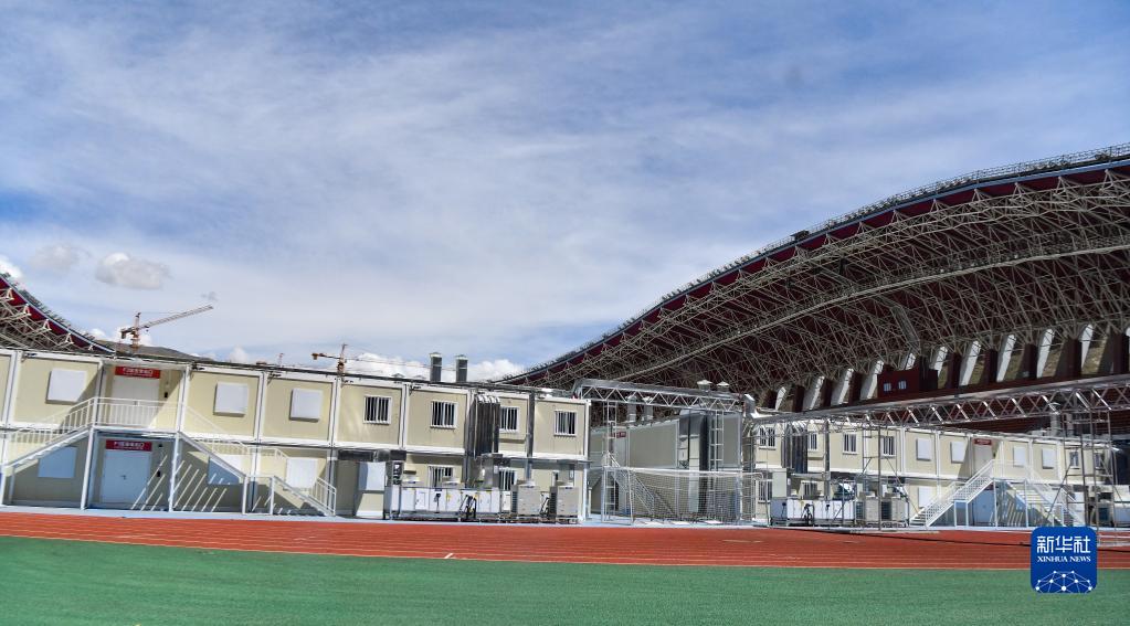 位于拉薩市柳梧新區拉薩市群眾文化體育中心內的方艙醫院(8月9日攝)。