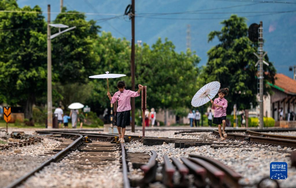 游客在云南省蒙自市碧色寨火車(chē)站景區游覽(8月9日攝)。