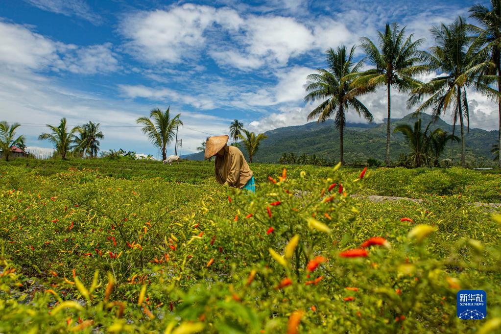 8月10日,農民在印度尼西亞中蘇拉威西省帕盧的辣椒地里收獲辣椒。