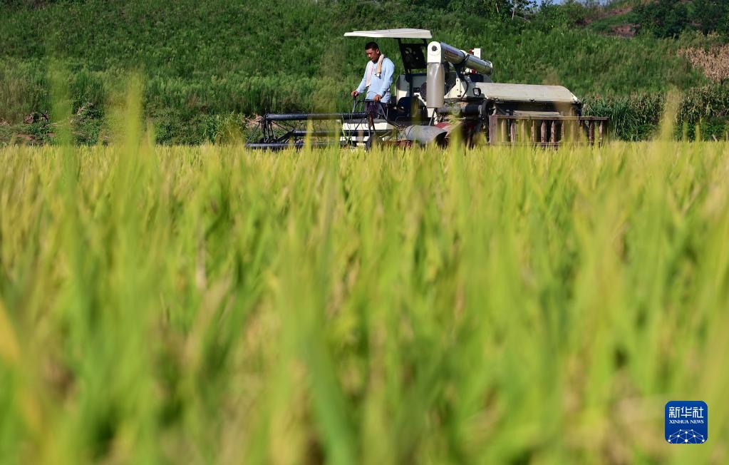 近日,水稻進(jìn)入收獲期,各地農民抓緊農時(shí)收獲、晾曬稻谷。