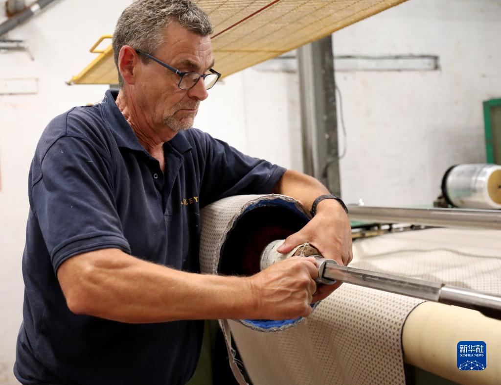 8月11日,工人在英國麥克爾斯菲爾德一家絲綢工廠(chǎng)內工作。