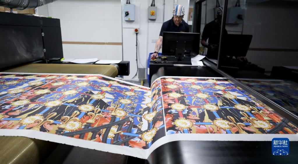 8月11日,工人在英國麥克爾斯菲爾德一家絲綢工廠(chǎng)內工作。