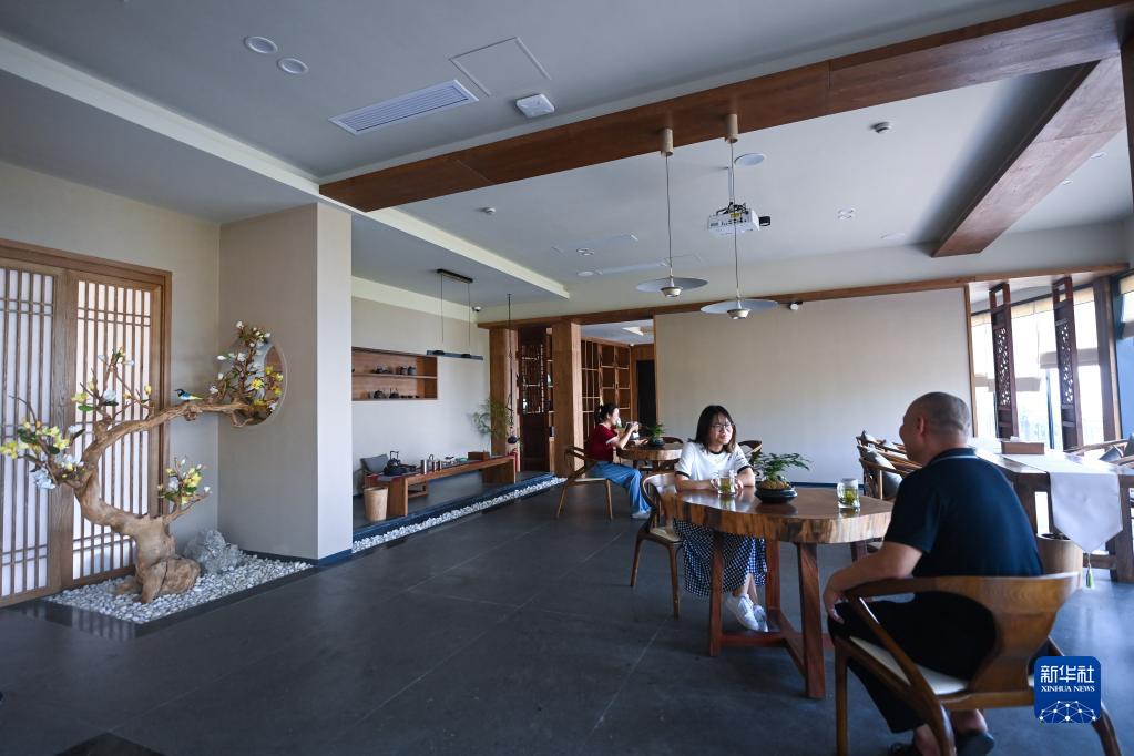 8月12日,游客在由回歸新鄉賢運營(yíng)的安頂村云霧茶吧內休憩。
